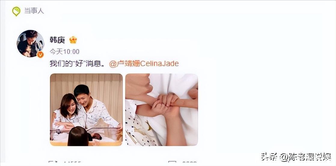 10月25日,韩庚高调宣布生子,并发文“我们的“好”消息”。
